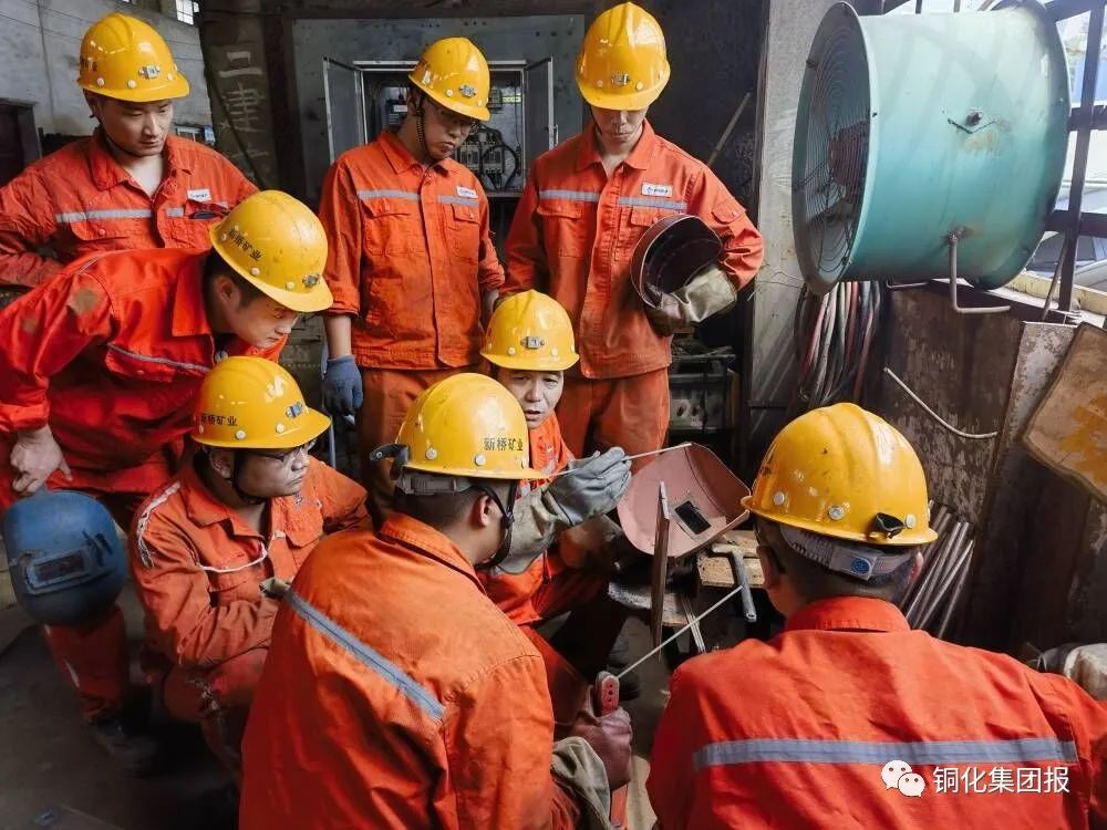 97,新橋礦業(yè)公司運(yùn)輸工區(qū)西翼維修班,銅都工匠、2022年市焊工職業(yè)技能大賽第一名袁文芳同時(shí)指導(dǎo)多名電焊工進(jìn)行實(shí)際操作練習(xí)。