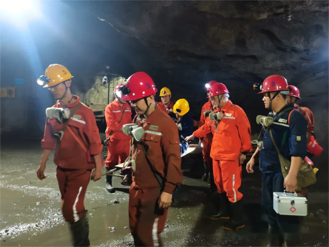 應(yīng)急演練總指揮在確認(rèn)井下所有人員、設(shè)備安全撤離,“受傷”人員獲救后,宣布演練結(jié)束,井巷工區(qū)恢復(fù)正常生產(chǎn)。
